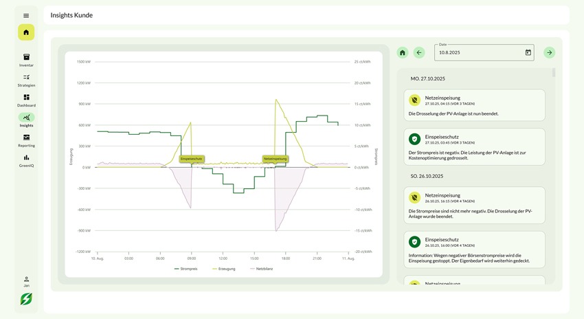 Mit Greencore AI bietet Greenflash eine KI-basierte Steuerung, die Einspeisungen bei negativen Strompreisen gezielt vermeidet. Die Software optimiert in Echtzeit die Nutzung jeder erzeugten Kilowattstunde, indem sie Photovoltaik, Speicher, Ladeinfrastruktur und industrielle Verbraucher intelligent koordiniert.
