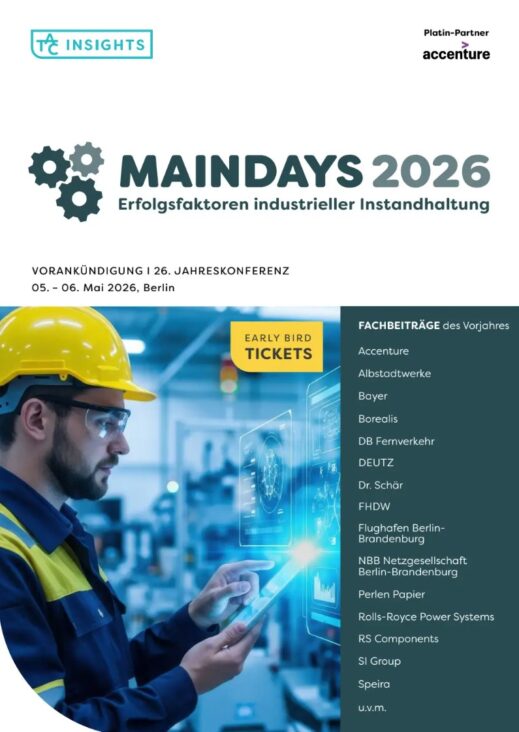 Die Maindays 2026 rücken die Transformation der Instandhaltung in den Mittelpunkt. Themen wie KI, Datenanalyse, Predictive Maintenance, ROI, Prozessoptimierung oder Dokumenten- und Contractor-Management prägen das Programm. Gesucht werden außerdem erneut herausragende Projekte für den Award „Maintainer 2026“.