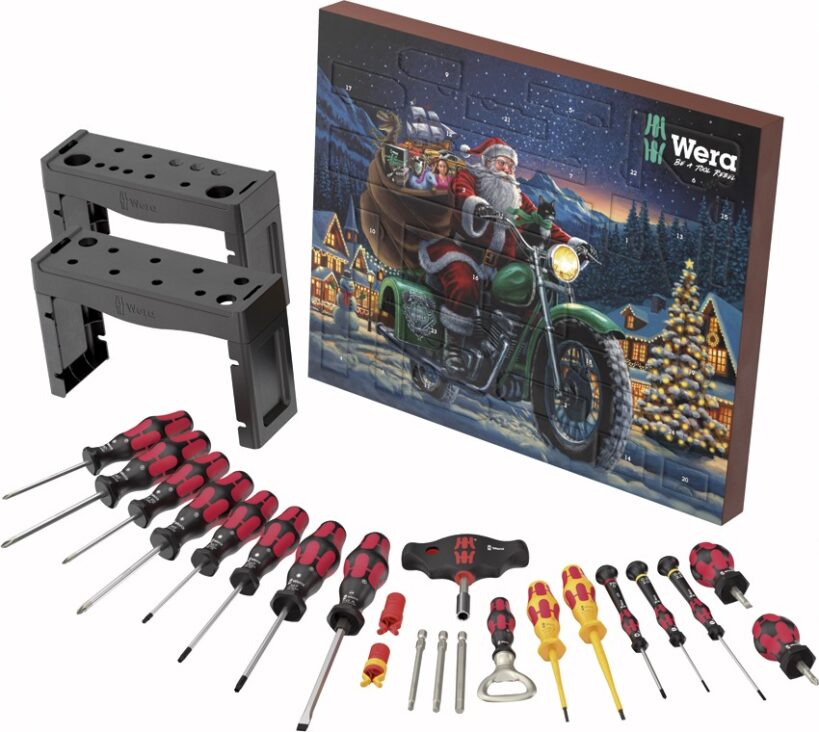 Auch 2025 sorgt der Wera Adventskalender wieder für Freude in der Werkstatt. Hinter seinen 24 Türchen steckt eine komplette Schraubwerkstatt für unterschiedlichste Anwendungen – mit hochwertigen Werkzeugen, cleverem Zubehör und dem bekannten Augenzwinkern der Marke.