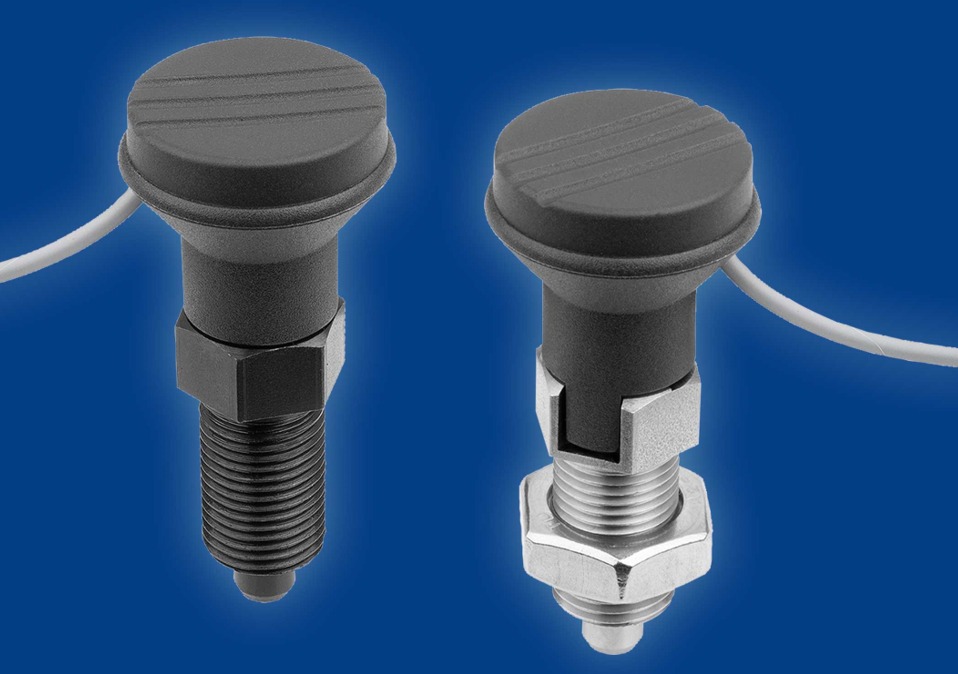 Die kabelgebundenen Konstruktionsbauteile sind mit Schutzart IP67 beständig gegen Spritzwasser, berührungsgeschützt und staubdicht. Zudem können Anwender auf (gehärtete bzw. nicht gehärtete) Edelstahl-Ausführungen zurückgreifen. Verfügbar sind Modelle mit Bolzendurchmessern von 5–12 mm und in Gewindegrößen von M10 bis M20. Bild: Heinrich Kipp Werk